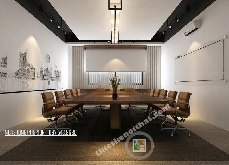 Phòng họp văn phòng đẹp được thiết kế theo phong cách hiện đại với đồ nội thất cao cấp