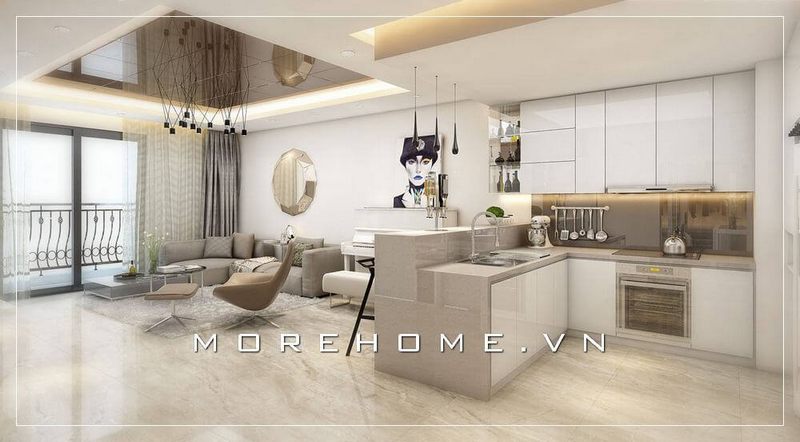 Mẫu thiết kế nội thất cho căn hộ hiện đại với tông màu trắng bé làm chủ đạo sẽ tạo ra một không gian sống tiện nghi và thân thiện cho người sử dụng.